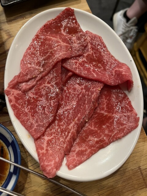 渋谷駅から徒歩10分程、PARCO方面に向かい、その先の入った細い路地先には、焼肉の良い香りの煙ムクムクな客が敷き詰められている狭い二階建ての店内も趣良き。国産黒毛和牛のみ使用なため、中々他店では食べることの出来ない和牛のタンを食べることができます。七輪ではなくロースターな為、お肉にはにはボーダーの綺麗な色がつき、火力は強めです。タレは特性の生姜のタレもありいいアクセントになりました。