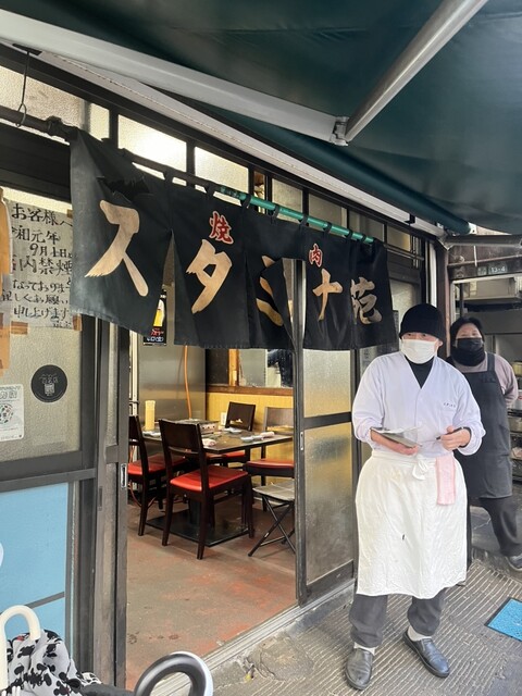 西新井駅からバスで「鹿浜3丁目」まで15分、そこから徒歩で5分ほど。交通の便はそこまで良くはありませんが、全国の焼肉好きが足繁く通う伝説の焼肉屋「スタミナ苑」。平等に味を伝えたいため予約を一切受け付けておらず、並ぶのみ。総理大臣もかつて並んだほどの名店です。その日は13時10分ごろに到着して一番乗り。到着した10分後くらいにはじわじわと客が並び始め、開店の16時まで待ちました。どうしてそこまでスタミナ苑が人気なのか。その理由は、現代の焼肉の基盤を作り上げたお店だからです。スタミナ苑の創業1967年以前、大阪の鶴橋から、質の高いとは言えないお肉をタレで揉み、臭みを取り除いてから焼いたのがきっかけとなり焼肉が世に広まりましたが、スタミナ苑は目利きされた極めて質の高い正肉、そして冬場でも氷水で洗い締めた、丁寧な手入れによる質の高いホルモンのみを扱いました。そこからスタミナ苑のスタイルが広まり、質の高い正肉とホルモンを扱う焼肉屋が増えていきましたが、今でも発祥の地であるスタミナ苑は色褪せず、日本一の焼肉屋と言っても過言ではないでしょう。また、正肉やホルモンだけでなく、牛肉を余すことなく使った創作料理は度肝を抜かれるほど衝撃的な絶品でした。あえて理由は述べませんが、店主の豊島雅信さんの強い心から真心込めて作られる料理、お店の温かさはものすごく感じることができ、とてもかっこいい「漢」だと思いました。優しい従業員の方がおすすめの味付けや焼き方も教えてくれる、とても心温まる焼肉屋でした。