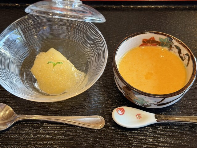 【デザート】りんごのコンポート かぼちゃのムース。