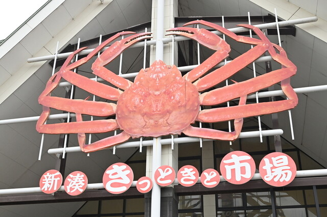 「きっときと」とは、富山の方言で「新鮮な、生きの良い」を意味します。新湊きっときと市場や富山きっときと空港のように、固有名詞に地域色を強調する際に使用されています。富山駅前から富山ブリカニバスとして観光バスが新湊港や氷見港を結んで観光客を運んでいます。新湊港の特徴の一つとして、午前11時にセリが行われることです。11月に入ると紅ズワイガニの水揚げが始まり、新鮮はカニを市場で食することができます。但し、日曜日は休場のため料理飲食店も休業店が目立ちます。今回は雨の日曜日の訪問となりましたが、新鮮な紅ズワイガニを堪能することが出来ました。越中旅は11月以降を強くお薦めします。一泊二日で紅ズワイガニだけを目的とする旅も十分ありですよ。(浜焼は季節限定で晩秋は提供されません。代わりに紅ズワイガニが堪能できます)。また、大将のきめ細やかな心配りが嬉しいです。人情溢れる新湊港は、心地よい観光地です。(きっときと市場で、2万円以上の買い物をすると、万葉線の無料乗車券の交付を受けられます。)