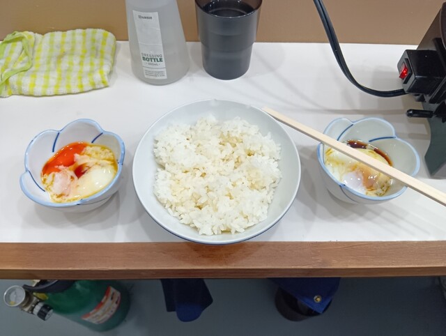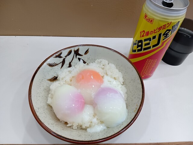 ライス(並盛)+温玉トッピング×3 ドリンク(勝手に持ち込みw)