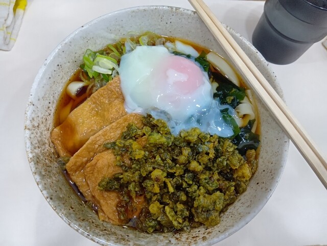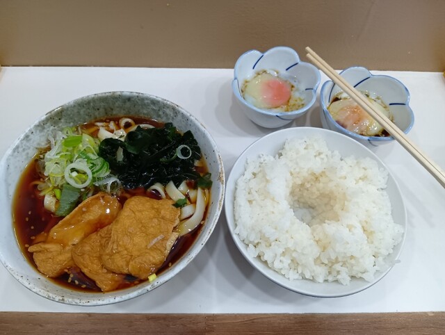 選べる朝定セット(きつねきしめん+ライス並盛+温玉)+追加温玉トッピング