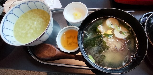 朝ご飯を頂きました。朝から豪華です。お茶粥から頂きましたが、卵かけご飯を食べる為に白ご飯をおかわり。鰯つみれ味噌汁はよく出汁が効いています。釜揚げシラスもおかわり出来ます。とても美味しかったです。離宮という事で価格は高いですが、その分の価値はありました。
