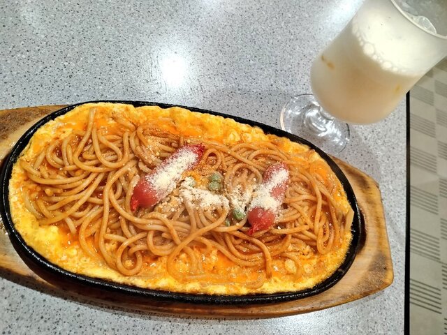前回と同じくバナナジュースと看板メニューのモリスパを注文。
