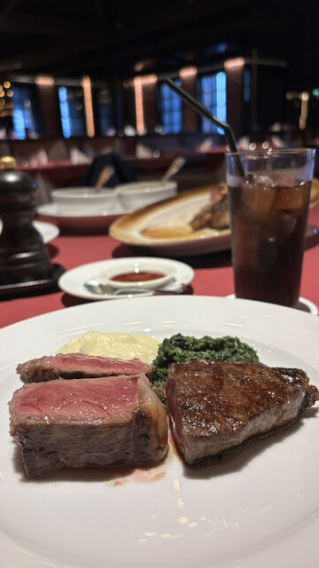 熱々のお皿で運ばれてきたお肉は、焼き加減が絶妙で、一口食べるとジューシーな肉汁と香ばしい香りが口いっぱいに広がる。