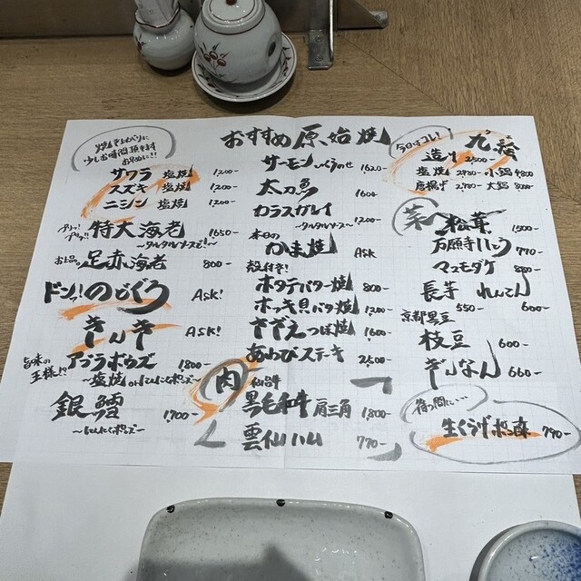 カウンターとテーブル席があって今回2人で来たので囲炉裏の前のカウンター席に座ってお魚が焼けるとこが見れてラッキー( ✌︎'ω')✌︎