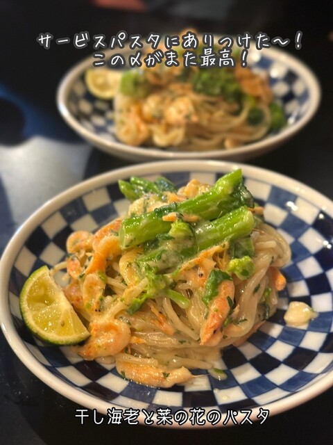 そしてある時〜ない時〜があるサービスパスタも今回あったのでこれも絶対黒板に書いてる時は食べたいやつ!