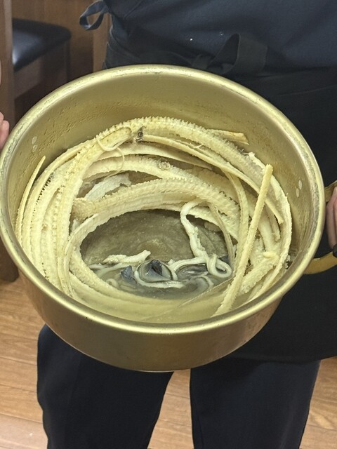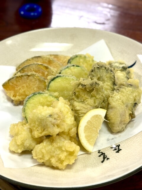 (エイの肝ゴマだれ和え、牡蠣うま煮、バイ貝)