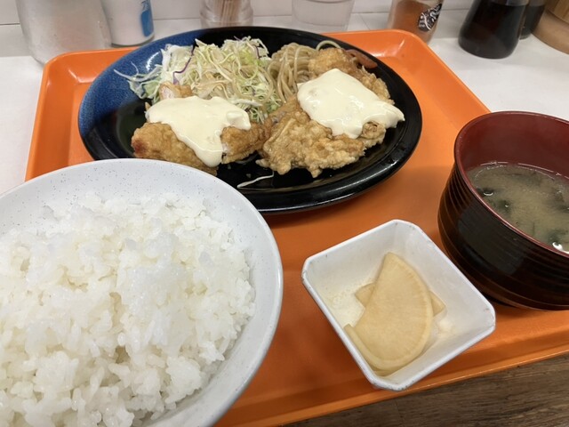 チキン南蛮は1枚半くらいあり、なんとスパゲッティまでついてました。