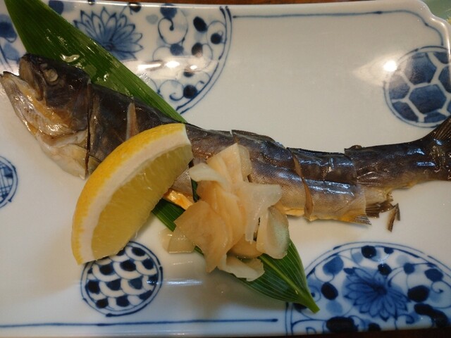 お店オススメの温かいそばがきはふわふわ。初めて食べた焼枯らしはとても自分好みで、川魚の味がしっかり、食感はしっとり。