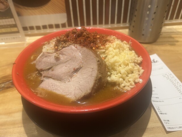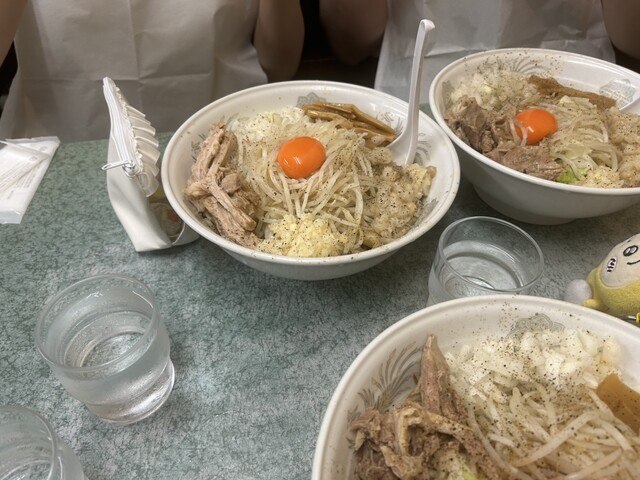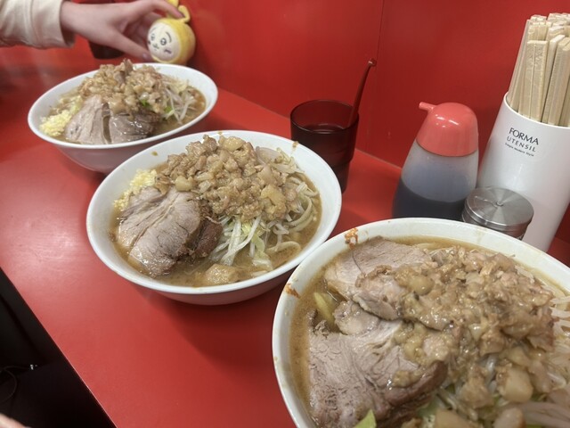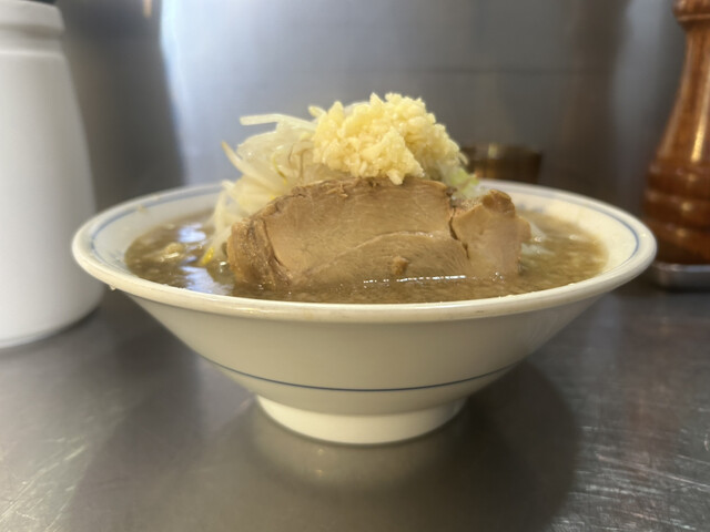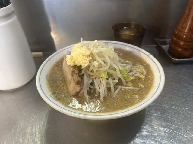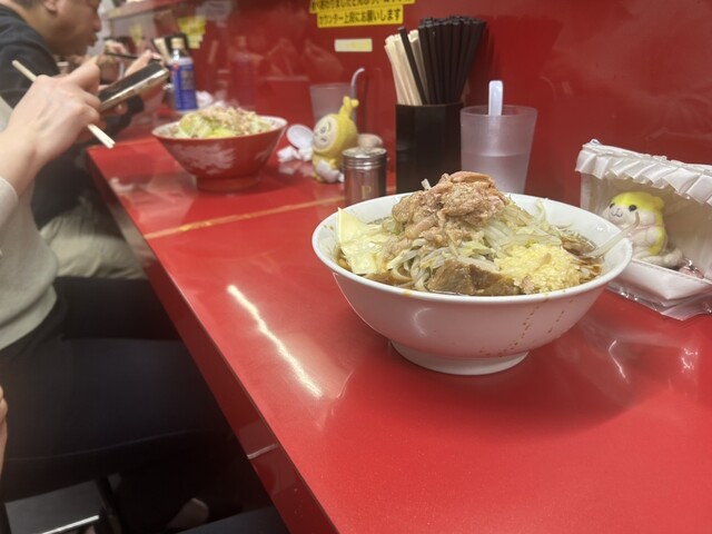 小ラーメン。二郎の中では、細いデロ麺。ブタは柔らか。WPと一味で味変。丁度良い量10分もかからず完食。ご馳走様でした。