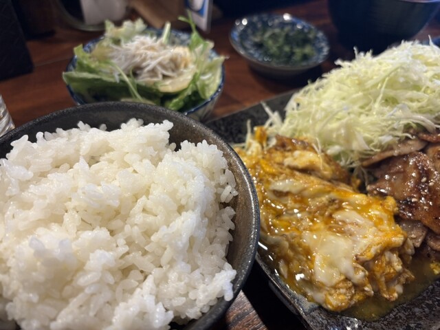 味噌味だわ、甘辛くて美味しい、居酒屋ランチなだけあって味が濃い!鉄板のコゲの風味も最高!ご飯が進む!結構大きめのお茶碗にこんもり盛った白米ですが、あっという間になくなりました。おかわりどうしよ…。おや?サラリーマンたちがおかわりに立ったぞ!便乗だ笑。結局2杯をペロリと完食です(∩´∀`)∩