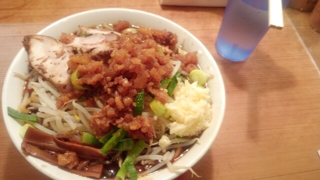 美味しかった。二郎系っぽい感じで野菜がたくさん乗ってる。