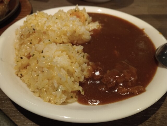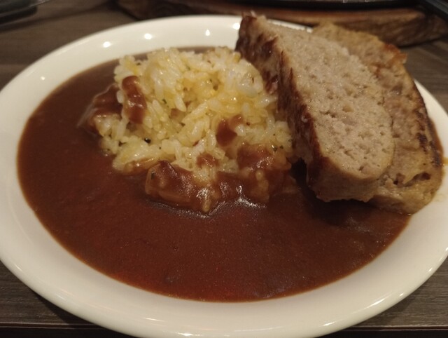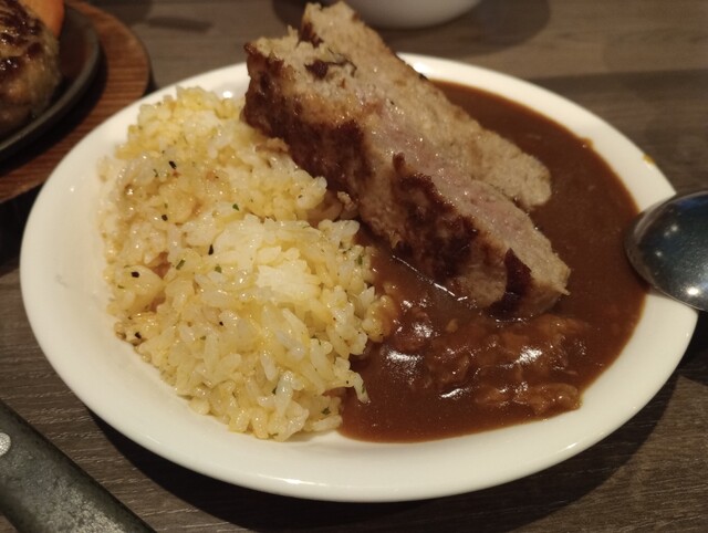 牛肉の旨味がしっかり溶け込んだまろやかなカレーとハンバーグとの相性はピッタリで、どちらかの味に偏る事がなくバランス良い味わいでとても美味しく食べられました。