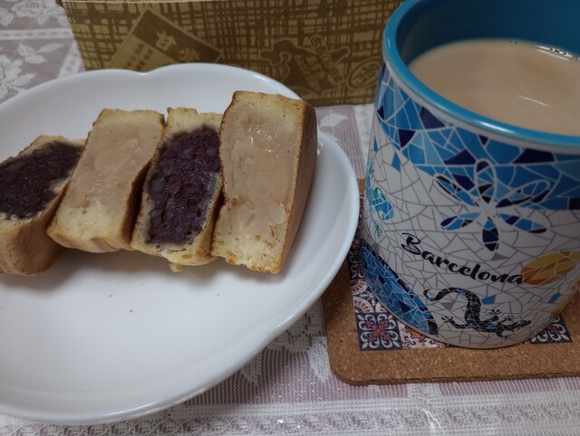 赤餡と白餡がありまして、赤餡は勿論好きなんですが、白餡がとても優しい口当たりでくどくなくって結構美味しいので、私は必ず赤白の両方を購入しています。