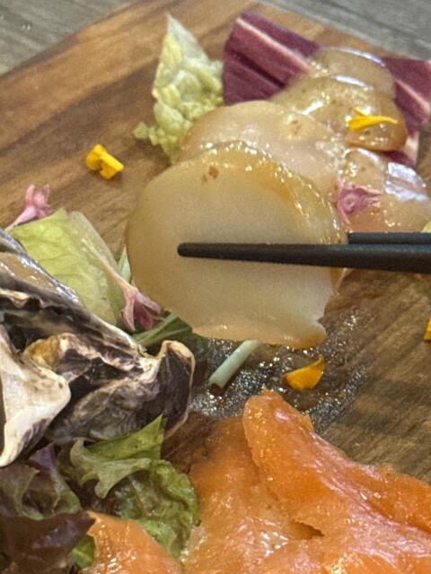 サーモン▶︎まったく生臭さなしのフレッシュさと、燻製の香りとかかってるソースが合ってて美味しいです。