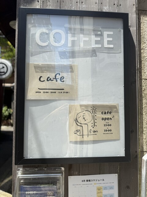 基本は12時〜18時ですが、Instagram▶︎f.-on cafe または店舗外の月間スケジュールの掲示で最新の営業日が見れます。
