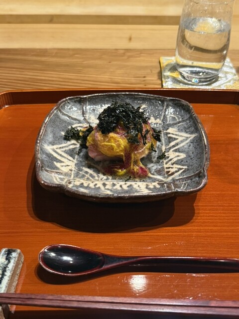 北海道のあんきも、ポン酢のジュレ、有明の焼き海苔