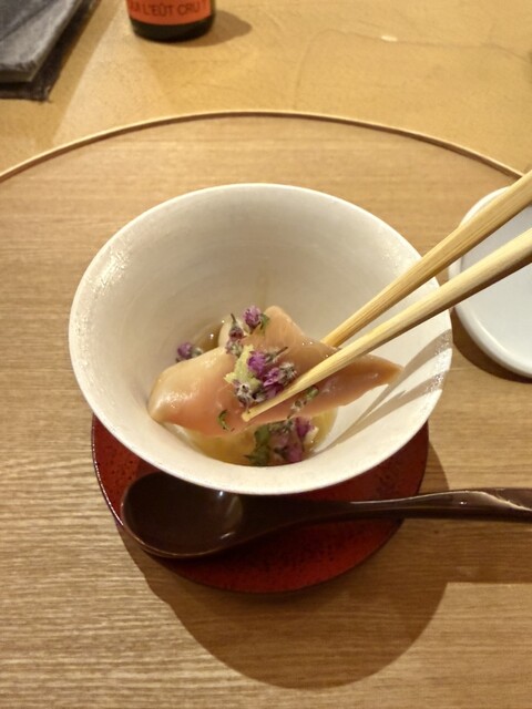 オープンキッチンのカウンターで繰り広げられるおまかせコースは、香り・味・構成すべてにセンスを感じます。少量ずつでも満足感があり、日本の旬を丁寧に表現した料理に、寄り添うワインペアリングのバランスも秀逸。