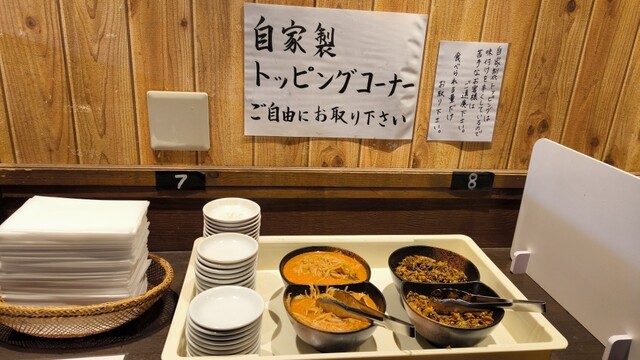 無料トッピングのシャキシャキ辛もやしを加えると、