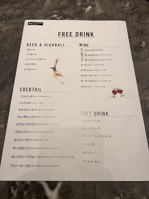 全9品・2.5時間飲み放題付きの「HEARTHコース」を予約していました。