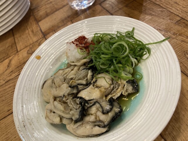 牡蠣ポン酢、お好み焼き(広島牡蠣スペシャル、チーズ)、尾道風 黒中華そばをオーダー。
