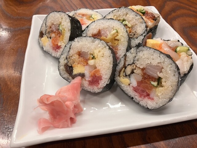 前回いただいて感動した名物「千両巻き」をまた味わえて嬉しい限り。太巻きの断面には色鮮やかな具材がぎっしり詰まっていて、昔ながらのお寿司屋さんらしい贅沢さを感じます。