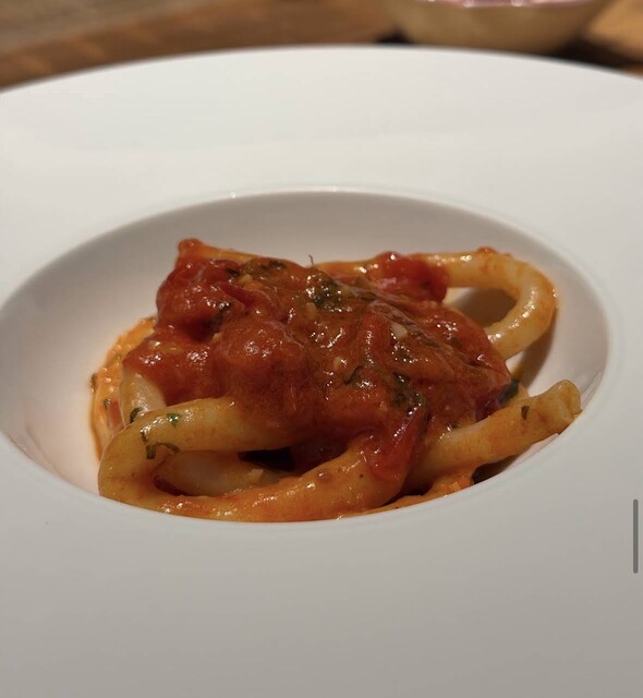 コース料理は前菜からデザートまで、旬の食材を活かした構成で、一皿一皿の完成度が非常に高いです。素材の良さを引き出す火入れや味付けが秀逸で、特にメインの肉料理は香ばしさと旨みのバランスが見事でした。パスタや前菜も印象に残る美味しさで、全体の流れがとても美しいコースでした。