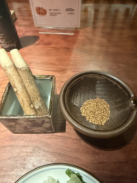 ゴマを擦って待機してると程なくしてとんかつがやってきました。