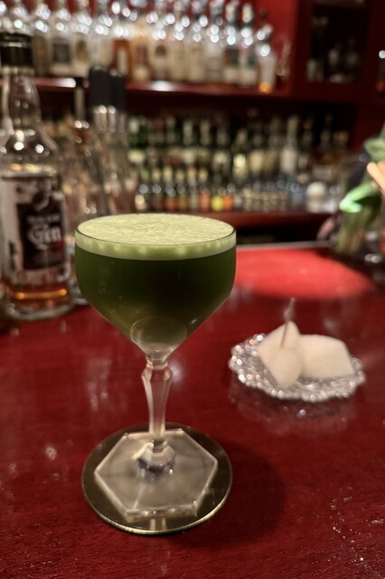 ジャスミンと新茶を抽出した自家製のシロップと、パチュリーのティンクチャーを使われた一品。通常のギムレットはジンとライムだけで完成されますが、この二つの組み合わせが素晴らしくて驚きました。