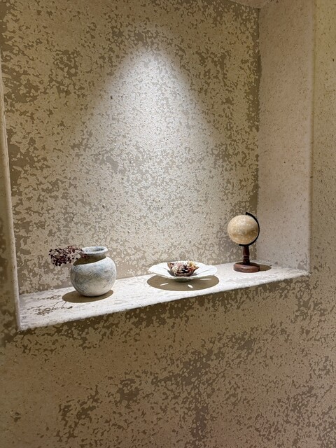 まずロケーションが唯一無二です。日本橋の古くうつくしい歴史ある建物の中をリノベしていて、タイムスリップしたかのような異世界感があります。中は広く天井も高く、特別な雰囲気があります。壁にもカカオの皮を混ぜているらしく、テーマ性も感じられました。