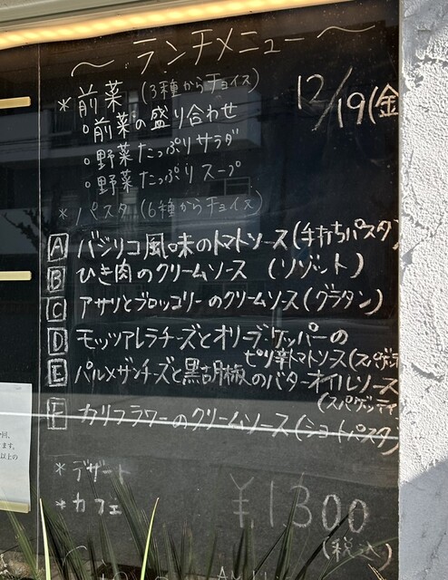 ランチはプリフィックスのミニコース仕立て、アンティパスト、プリモピアット、ドルチェ、エスプレッソの4皿コースが驚異の1300円!!