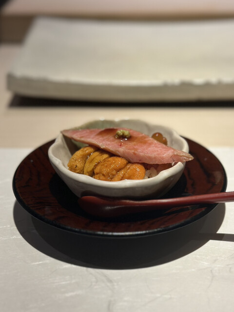 小丼は雲丹、いくら、大トロのタタキ。なんて豪華な小丼。