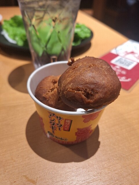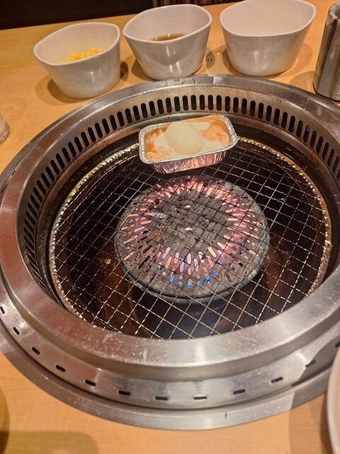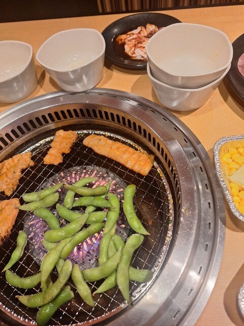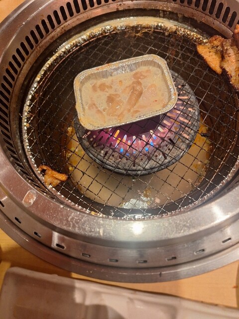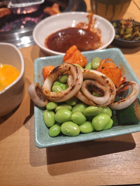 キングコースを、いただきました。今日は口開けから幕張湯楽の里温泉入り炭酸泉、岩盤浴で8L位汗を流し[水分補給は体重を、計りながら、岩塩温泉水、ダカラで調整]此を怠ると、脱水症状、水のみですと、足がつったり致します]先ず駐車スペースは、平場20台ブラス車椅子マーク2台焼肉キング船橋夏見台店は平場の駐車スペースが少な目なので1Fが駐車スペースの2階建てDES。沖縄フェア開催が千葉県はたしか、新鎌ヶ谷店、豊四季店、夏見台店でしたので幕張湯楽の里から近い帰り道でもあるこの店を、選びました、先ず沖縄海蘊が旨い、壺に入った豚バラカルビがとても美味しい、アンダーギーも絶品、私はキングコースの時はメインに大判ロース注文するのですが沖縄フェアがとても美味しいノデ頼むのを忘れました。後は玉ねぎを、軽くアブってハサミでみじん切りにし、プレミアムの固い牛タンより薄切りの豚タンを、玉ねぎみじん切りにレモン汁をかけ韓国海苔巻きがとても美味しいDES、塩気が足りなく感じる方はキングコースより注文可能なネギ塩だれを、2人前玉ねぎみじん切りに混ぜ混ぜして食べると此又素晴らしく美味しいDES、