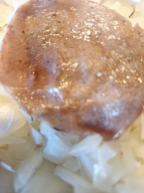 ホルモンアイスクリーム茹であげ焼、塩ダレ抜き成熟豚ロースButter醤油風味、塩ダレ等しょっぱく感じられる時はタレ抜きで発注可能DES又お茶でシバラク漬け込んでも食感が変わります、Butterのみの発注可能DES、薄切りの成熟豚ロースタレ抜きを焼取り皿に取り分けButterをちょっと乗せチョイ醤油でとてもビューティフルで良さげであります。ロースは網の縁でゆっくり焼き上げると美味しいですよ。