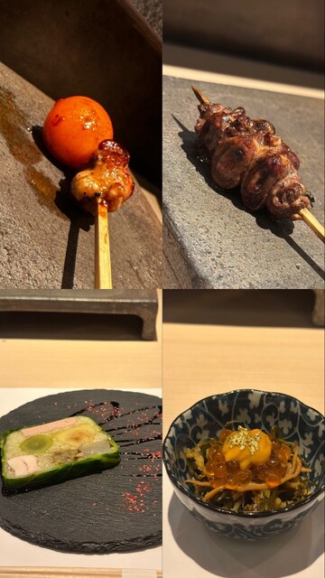 前菜からすでに隙がなく、一品一品が丁寧で上品。続くハツモトは驚くほど瑞々しく、火入れの技術の高さが一口で伝わります。銀杏の香ばしさ、ささみのしっとり感も感動レベルで、「焼鳥ってここまで繊細な料理だったのか」と価値観が変わるほど。