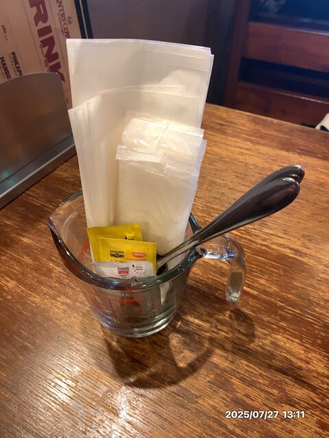 木を基調とした温かみのあるインテリアが印象的で、アンティーク雑貨やポスターが壁に飾られており、どこか懐かしくて心地よい空間。照明もやや落とし気味で、落ち着いた雰囲気の中でゆったりと食事が楽しめます。席数は17席ほどで、こぢんまりとしていますが、その分プライベート感もあり、1人でもふらっと入りやすい空気感です。