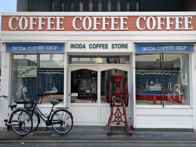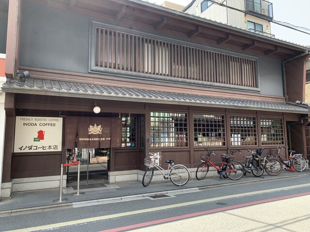 お冷のコップにもイノダコーヒのオシャレなロゴが!
