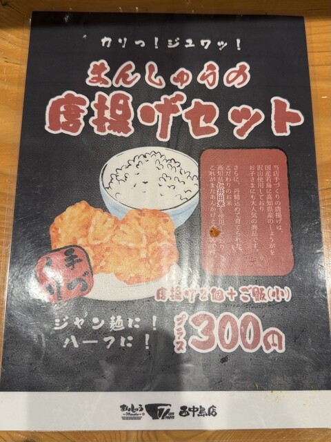 ・まんしゅうの唐揚げセット(唐揚げ2個+ご飯(小)300円