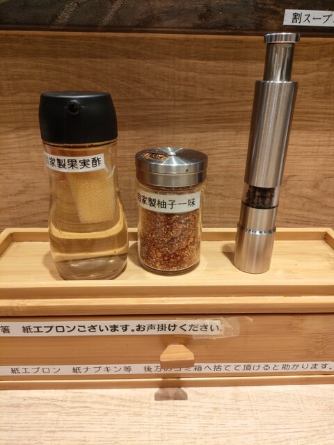 レンゲで掬ったスープに卓上の果実酢や柚子七味、ブラックペッパーで味変しながら飲むのがマイルール。
