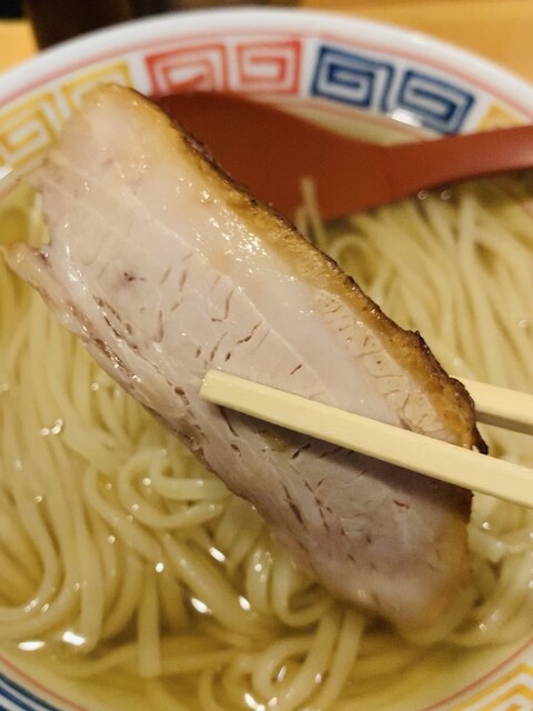 平打ちのストレート麺はツルりと口へと吸い込まれていき、喉越し良くスープもよく絡んでいます。