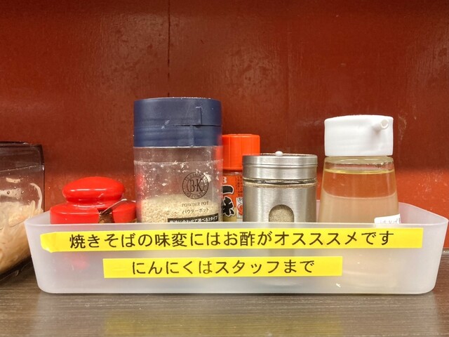 「焼きそば」は醤油ベースの味付けで好きなタイプでうまー途中お酢で味変するとさっぱりして2度楽しめるーー