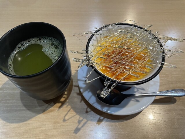 プリンはトロっと上品な卵の風味とバニラに似た豊かな香と味が楽しめて、飴とも良く合う。