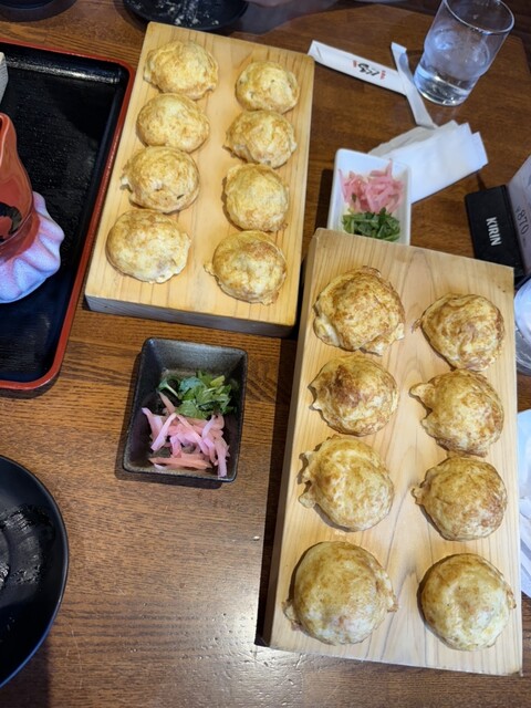 とてもおいしくて4人でたこ焼き2つ、明石焼き3つ、明太チーズたこ焼き1つをオーダーしたら間違えではないな確認されました笑