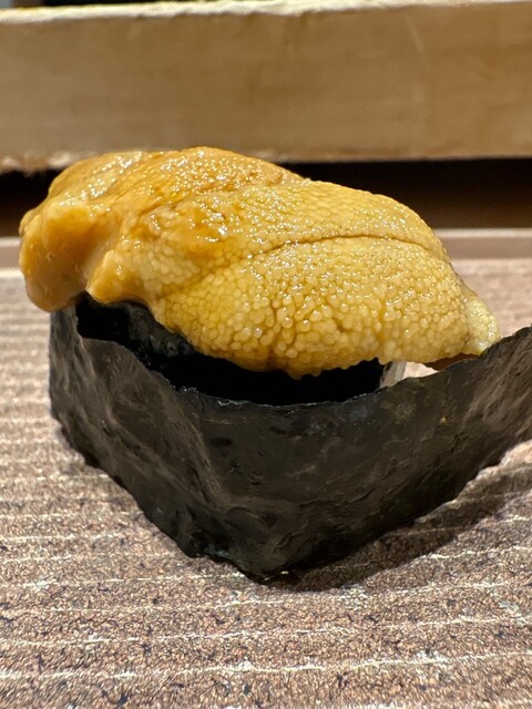 毛蟹と雲丹のリゾット風。濃厚な雲丹とリゾット風のシャリが一体となり、キャビアがアクセントに。完成度の高い一品。