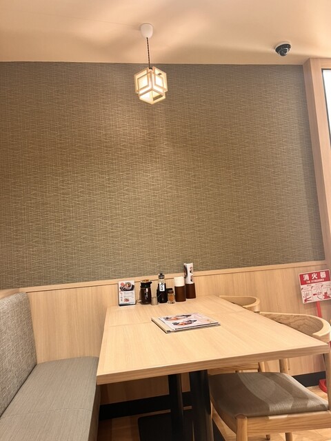 店内、白を基調とした清潔感のあるインテリアで、広めのテーブル席が多かったです。