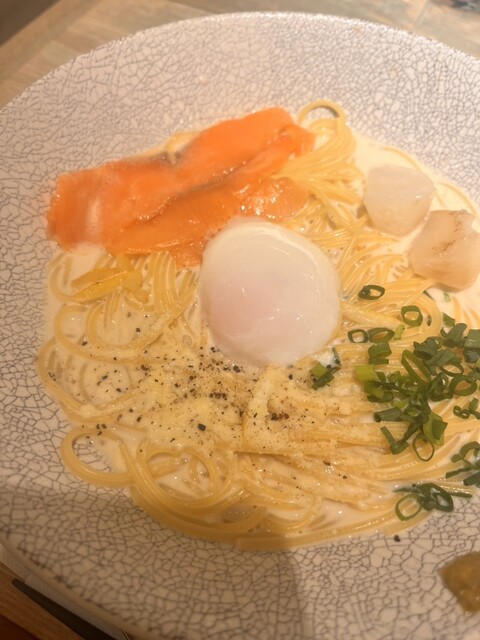 ▪️スモークサーモンと蕪の柚子カルボナーラ