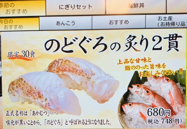 のどぐろの炙り握り 748円税込