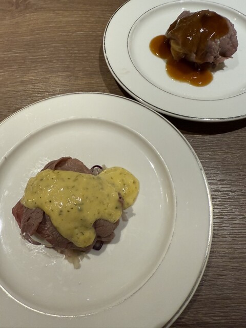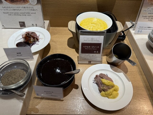「ブラックオパールビーフの瞬間ポシェ」は、絶対2種類のソースで食べたいと一番最初にライブキッチンに行き注文しました