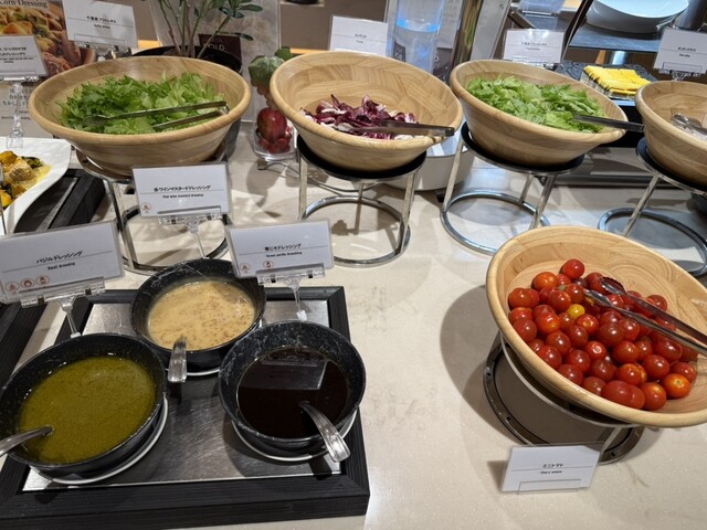 お料理で、目をひくのが、カラフルでいろいろな野菜や海藻、海老、ハム等を使ったサラダ、普段あまりバイキングで野菜を取らない私でも一皿分は、必ず盛り付けてしまいます